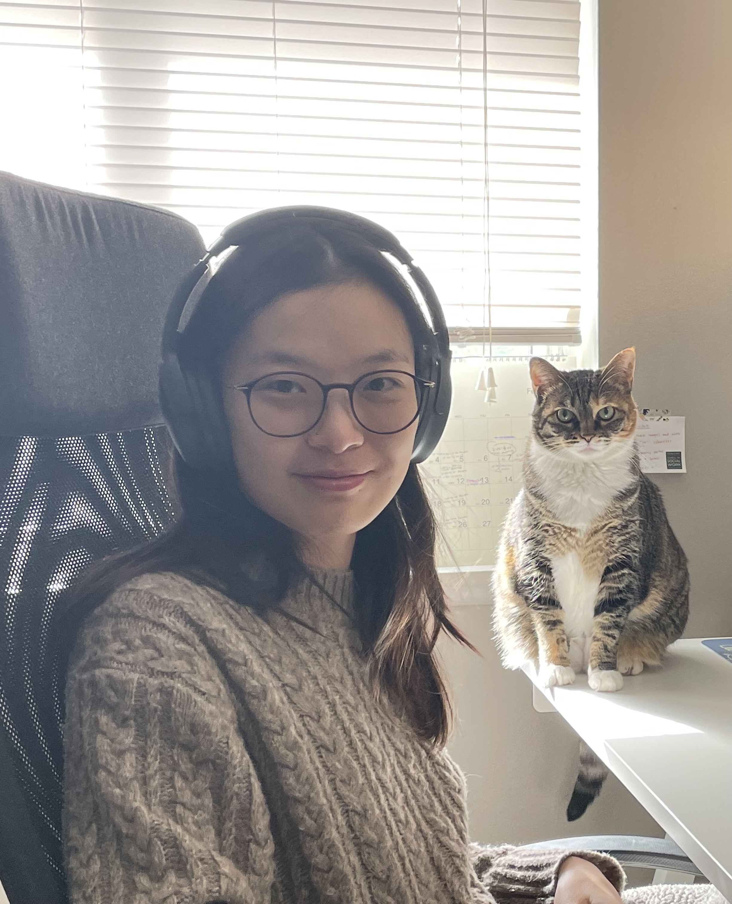 Outside of work, I enjoy tennis, rock climbing, knitting, playing mahjong, watching far too many murder mysteries, and being supervised by my cat, Xiaosai.